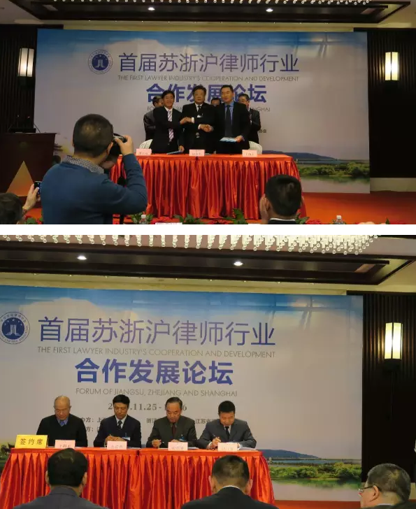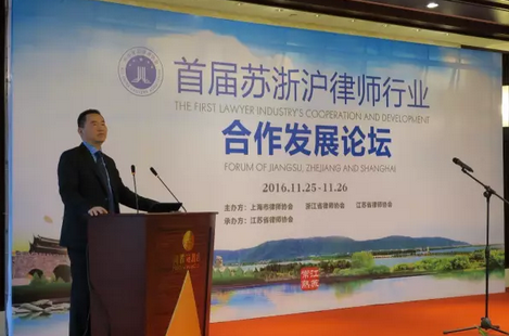 2016年11月26日,由上海、浙江、江蘇三地律協聯合主辦、江蘇律協承辦的首屆蘇浙滬律師行業合作發展論壇在常熟舉行,來自江蘇、浙江、上海、北京的司法機關領導和律界人士100多人參加活動。上海市司法局副局長、上海律協黨委書記王協、上海市司法局律管處副處長、上海律協黨委副書記忻峰參加了此次論壇,上海律協組成16人的律師代表團,由會長俞衛鋒、副會長管建軍、鄒甫文、潘書鴻、副秘書長陳東、王旭峰等帶隊參會。