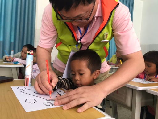 學(xué)校雖然不大,但是干凈整潔。有了前一天的實(shí)踐和課后的經(jīng)驗(yàn)總結(jié),今天的課堂上律師們不再生澀,且略微地表現(xiàn)出一絲游刃有余感覺。從課前準(zhǔn)備到升旗儀式、從美術(shù)課的涂色識(shí)物到音樂課的舞蹈歌唱、從午餐的準(zhǔn)備到一起光盤,一切都有條不紊地進(jìn)行著。短暫地幾個(gè)小時(shí)里,無(wú)論是華夏匯鴻的律師、還是“陽(yáng)光善行”和“竹蜻蜓”的社工,無(wú)論是村小的校長(zhǎng)、老師還是村里的小小志愿者們,大家各司其職、盡職盡責(zé)地完成了各自的工作和任務(wù)。孩子們的歡聲笑語(yǔ)趕走了持續(xù)的陰雨,雨季的云南難得地出現(xiàn)了整日的晴空。
