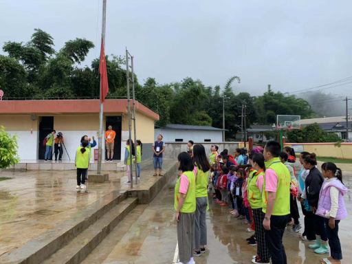 7月27日,“呀咪呀吧入學(xué)體驗(yàn)營(yíng)”公益支教活動(dòng)第一站——瀾滄縣竹塘鄉(xiāng)云山村小學(xué)。上午10時(shí),入學(xué)體驗(yàn)營(yíng)正式開始。在莊嚴(yán)的升旗儀式上,孩子們無(wú)暇的目光注視著鮮艷的五星紅旗,并緊隨著國(guó)旗緩緩移動(dòng)。