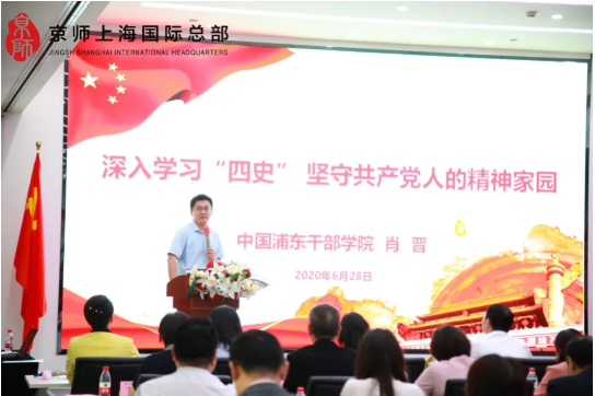 在隨后的主題黨課環(huán)節(jié),中國浦東干部學院副教授、“四史”宣講團成員肖晉以《深入學習“四史”,堅守共產(chǎn)黨人的精神家園》為主題,為大家講授了一堂生動的黨課。