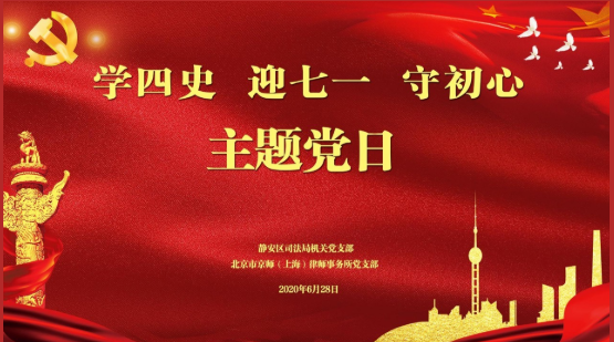 為認真貫徹落實市委、靜安區(qū)委關(guān)于深入開展“四史”學習教育的部署要求,扎實學習“四史”,共同迎接“七一”,昨天(6月28日)下午,在建黨99周年來臨之際,靜安區(qū)司法局機關(guān)黨支部與京師上海律師事務所黨支部聯(lián)合開展的“學‘四史‘,迎七一,守初心”主題黨日活動正式拉開帷幕。