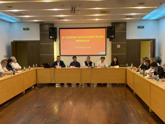 為進一步深入推進本區律師行業突出問題專項治理自查核查階段工作,加強律師行業規范化建設,推動律師行業提高思想認識,不斷提升全區律師的政治素質和業務水平。5月19日下午,虹口區司法局召開第二批次“虹口區律師行業突出問題專項治理”律師座談會。市律協副會長、市律師行業突出問題專項治理督導組第八組組長潘書鴻,市律協副秘書長潘瑜及市局律師組朱東輝、虹口區司法局律公科科長周俊、虹口律工委主任田波出席座談會。座談會由虹口律工委主任田波主持,本區律師事務所主任、黨組織負責人近50人參加座談會。