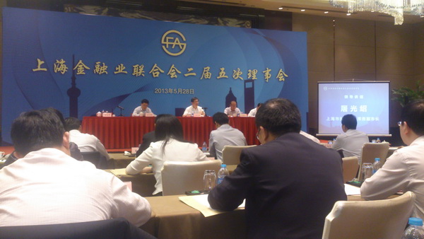 2013年5月28日,上海金融業(yè)聯(lián)合會(huì)二屆五次理事會(huì)議在上海綠地萬(wàn)豪酒店宴會(huì)廳召開(kāi)。會(huì)議由聯(lián)合會(huì)副理事長(zhǎng)季文冠主持。上海市常務(wù)副市長(zhǎng)屠光紹到會(huì)并作重要講話。上海市銀行同業(yè)公會(huì)、上海市證券同業(yè)公會(huì)等理事單位代表參加。上海市律師協(xié)會(huì)業(yè)務(wù)部主任潘瑜代表上海市律師協(xié)會(huì)參加。
