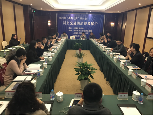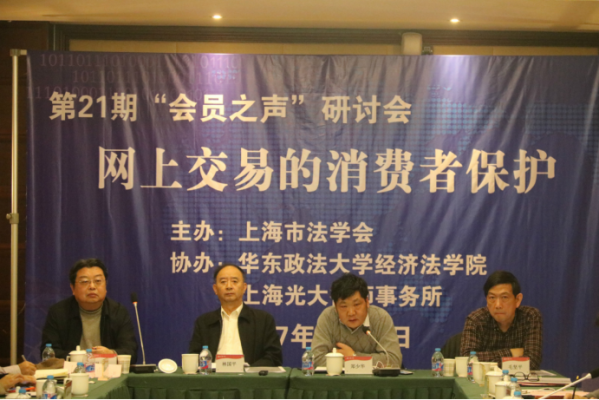 2017年1月19日下午,由上海市法學會主辦,華東政法大學經濟法學院、上海市光大律師事務所協辦的“網絡交易消費者保護”研討會在云峰賓館二樓會議廳順利召開。出席研討會的有上海市法學會常務副會長林國平、上海市法學會秘書長毛堅平、華東政法大學經濟法學院吳弘教授、上海財經大學校長助理/上海法學會消費者權益保護法研究會會長鄭少華教授、上海財經大學法學院副院長宋曉燕教授、華東政法大學財產法研究院院長高富平教授、上海市光大律師事務所主任祝小東、華東政法大學經濟法學院副院長伍堅副教授、華東政法大學經濟法教研室主任任超副教授、華東政法大學互聯網金融法律研究中心主任何穎教授及相關人員。法制報和律新社對會議進行了現場報道。