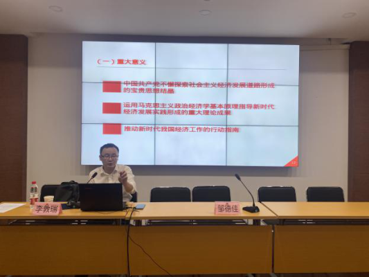 李敦瑞副教授圍繞新時代新階段經濟工作需要新思想指導、全面把握習近平經濟思想的科學體系和豐富內涵、深刻領悟習近平經濟思想對新時代經濟工作的要求等3個方面系統的講述了習近平經濟思想內容,并分析了新冠肺炎疫情對2022年經濟的影響。