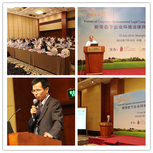 日前,由金茂律師事務所主辦的“新常態下企業環境法律風險管理論壇”在上海錦江小禮堂成功舉行。本次論壇邀請了包括環保部政策法規司官員、中華環保聯合會訴訟部部長、美國資深環境律師和環境修復專家在內的資深專家,與金茂所合伙人、上海市律師協會環境資源委員會副主任吳榮良律師一起,就新環境保護法的實施、環境公益訴訟、企業環境法律風險防范、中美環境法律比較以及環境治理和修復等展開了一系列探討。黃浦區司法局黨委書記張偉舫出席并致詞。環保局相關部門領導也出席了本次會議。上海交大、華東理工、上師大等高校的環境法學者也參加了本次論壇。