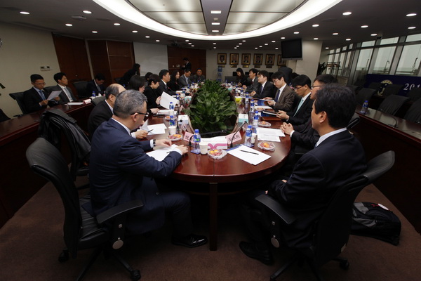 市律協與韓國首爾地方律師協會于2014年1月簽署了友好合作協議,這是繼簽署協議之后雙方互派律師訪問的第一次。首先,管建軍副會長對代表團的來訪表示熱烈地歡迎,然后介紹了市律師協會與全國律師協會的關系,上海市律師的執業情況,并介紹了特邀會員和團體會員加入市律協的基本要求。市司法局律師管理處毛文瑾也介紹了外國律師事務所在上海成立辦事處的申請條件以及外國律師會員制度。俞衛鋒還介紹了市律協的律師懲戒制度及實習律師面試流程。雙方也分別就對方的法律服務市場的發展狀況進行了提問,現場氣氛熱烈。