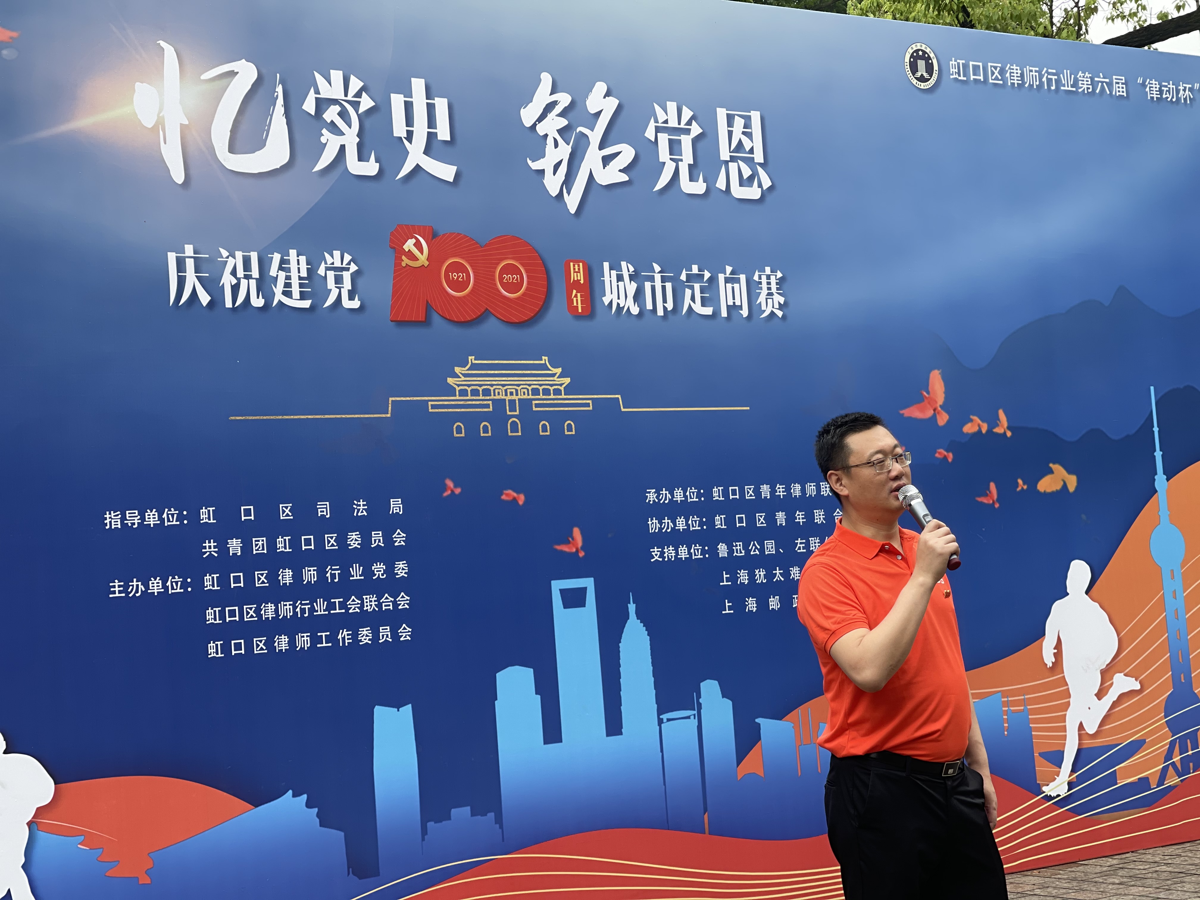 5月14日,由虹口區司法局、共青團虹口委員會指導,虹口區律師行業黨委、虹口區律師行業工會聯合會、虹口區律師工作委員會主辦,虹口區青年律師聯誼會承辦的虹口律師行業“憶黨史.銘黨恩”慶祝建黨100周年城市定向賽如期舉行。本次活動吸引了來自區司法局機關、區各律師事務所、區青年聯合會、虹口公證處等單位的30支隊伍,共計150名參賽隊員參加。共青團虹口區委員會書記梁麗娜、虹口區司法局副局長、區律師行業黨委書記胡曉紅、虹口區司法局律公科科長周俊、虹口區律工委主任田波、虹口區律工委副主任、虹口區青年律師聯誼會會長張曄出席開幕儀式。
