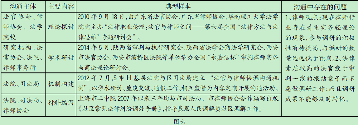 法官與律師是司法專業性信息溝通的主體毋庸置疑,而且依據審判權獨立的現代法治精神,也只能是審理該案件的法官與代理律師形成特定的溝通主體。訴訟外,法官與律師雙方職業身份弱化,司法專業性信息溝通基于主體的平等地位可以通過多種形式展現,故此時的主體不再僅限于法官與律師,還包括活動的主辦方及參與方,既可以是自治性組織,也可以是官方機構,還可以是教學科研單位,范圍廣泛,如法官協會、律師協會、法院、司法局、研究院校、專家學者等。