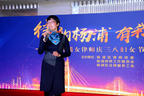 3月3日,楊浦區律師黨委、區律工委、區法律服務工會舉辦“律韻楊浦·有我芳華”女律師慶祝三八婦女節活動。市律師協會副會長鄒甫文出席,區委統戰部副部長徐進、區婦聯主席金雪萍、區司法局黨委書記、局長陸靜、市司法局律管處副處長張銘、禹瀟、律工委主任厲明、全體副主任以及律工委委員、女律師代表100余人參加。