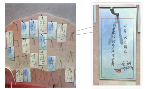 展廳的最后是一處留存紀念的地方。黨支部同志飽含對黨的祝福和對法治中國的美好愿景留念。