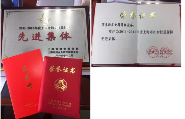 此外,浦東新區女律師聯誼會還獲得“2015-2016年度浦東新區三八紅旗手(集體)”榮譽稱號。該榮譽由上海市浦東新區婦女聯合會授予,以表彰立足崗位建功立業、弘揚優秀女性職業精神的先進集體。