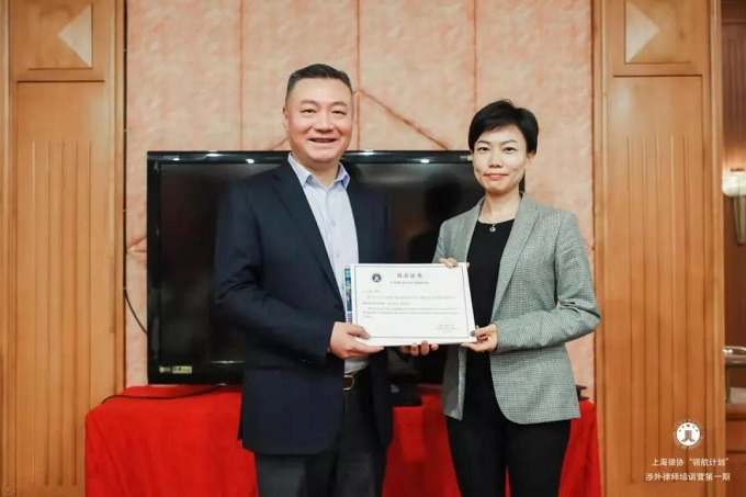 上海市律師協(xié)會外事委員會副主任史軍在發(fā)言中表示,上海律協(xié)為第一期做了充分的準(zhǔn)備工作,很榮幸有機會能夠和各位學(xué)員共同參加培訓(xùn)。非常感謝各位講師的辛苦教學(xué)及秘書處工作人員的全力支持與配合。祝賀各位學(xué)員完成全部培訓(xùn),順利結(jié)業(yè)。希望學(xué)員們結(jié)業(yè)后仍然保持繼續(xù)學(xué)習(xí)的習(xí)慣。