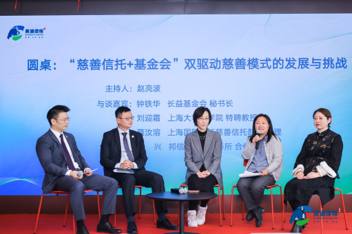 茶歇過后,活動進入圓桌分享環節。該環節以“慈善信托+基金會”雙驅動慈善模式的發展與挑戰為主題,邀請了上海大學法學院特聘教授劉迎霜、上海國際信托慈善信托部總經理蔡汝溶、長益公益基金會秘書長鐘鐵華、上海邦信陽律師事務所合伙人高興律師參與討論。嘉賓們分享了各自在慈善信托和基金會領域的經驗和見解,為慈善事業的未來發展提供了寶貴思路。