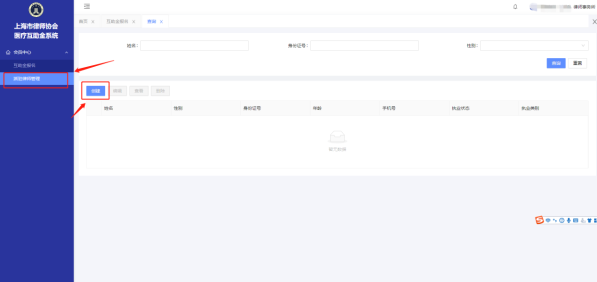點擊進入【20XX互助金】模塊后,進入醫療互助金系統。點開【會員中心】展開選擇【互助金報名】,如圖所示: