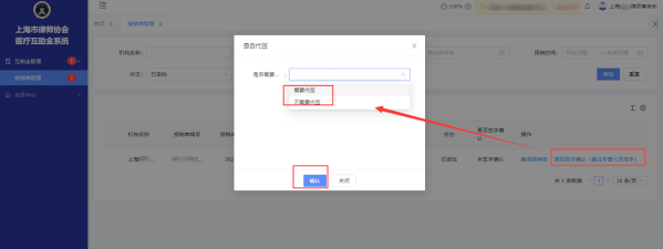 報銷單管理中的數字標1:表示有待辦事項1條,有1條市律協已審核通過的報銷單需要律師事務所專管人員選擇是否需要律協代簽字確認。