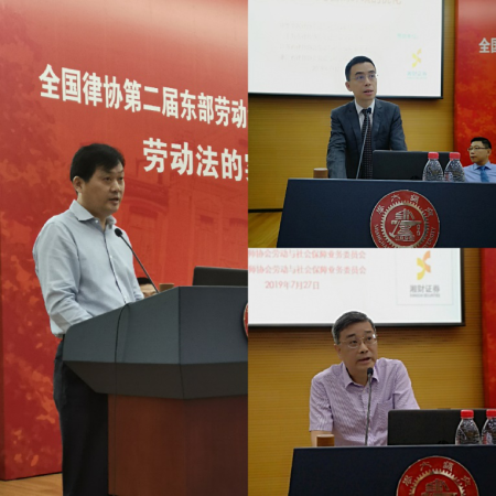 隨后,上海市勞動人事爭議仲裁院院長邱寶華、全國律協涉外法律服務專業委員會副主任姜俊祿、上海財經大學法學院教授王全興分別作主題發言。邱寶華院長以“長三角一體化建設中勞動法律法規適用統一問題研究”為題,指出今年勞動爭議數量的猛增及其原因,同時講解了大調研中常遇到的長三角法律地區勞動法律適用不統一的諸項具體問題。姜俊祿律師以“世界營商環境中的勞動力市場指標分析”為題,結合自身經驗介紹了參與世界銀行調研、積極要求將勞動力市場監管指標移出排名計算指標的努力,并指出政府行政改革應注重觀念改革,而非應付指標。王全興教授通過分析比較我國與西方國家勞動立法的歷史,指出我國當前勞動法的困境在于保護手段與保護范圍不匹配,并提出保護范圍適度拓寬與保護手段分類配置的改革建議。