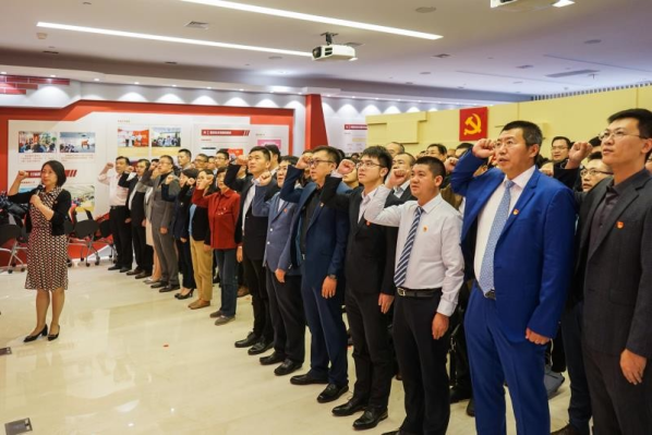 揭牌儀式后,全體律師黨組織書(shū)記在張玥同志領(lǐng)誓下重溫入黨誓詞。