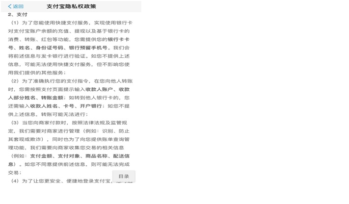 圖五:支付寶隱私政策特別標注了用戶特殊類型數據