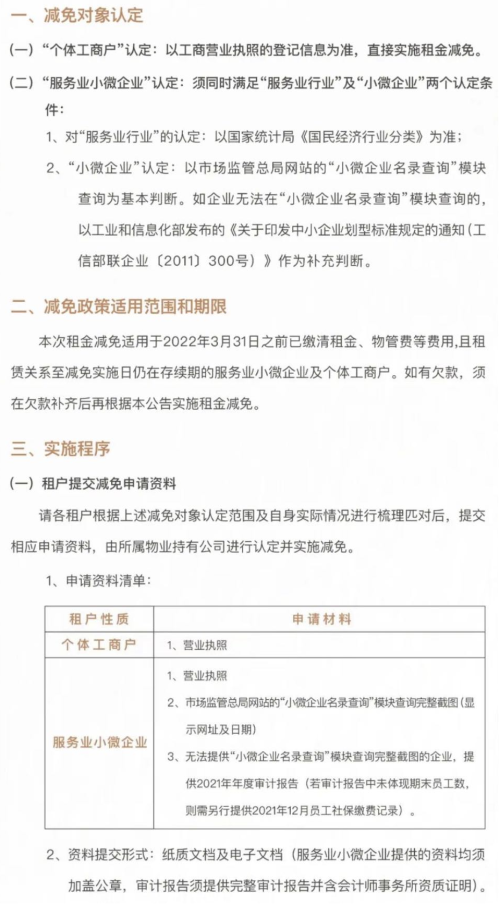 幸而,根據(jù)出租方近日發(fā)布的租金減免的公告,出租方將對(duì)承租該樓宇內(nèi)辦公房屋的服務(wù)業(yè)小微企業(yè)和個(gè)體工商戶給予三個(gè)月的租金減免,涉及減免租金的租期起止時(shí)間為自2022年4月1日至2022年6月30日。