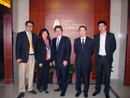 2013年5月9日,巴黎西蒙律師事務所管理合伙人Jean-Charles SIMON律師和周強律師拜訪并參觀了金茂所。本所執行合伙人劉東律師、執行合伙人毛惠剛律師、合伙人孫蓉律師接待了法國同行的來訪,并進行了親切友好的洽談。雙方就今后進一步加強交流和合作,更好地服務于兩國的企業進行了深入的探討。