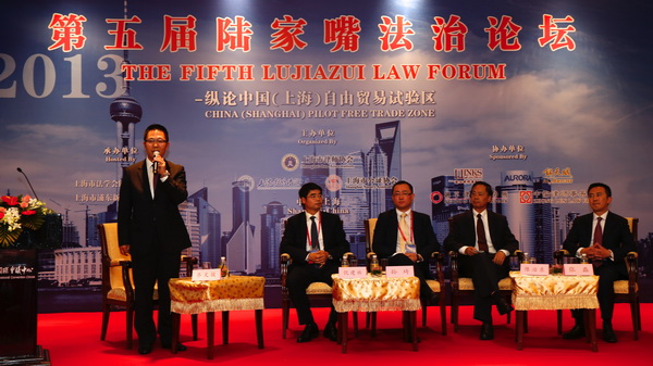 “上海自貿區”與國際金融主題討論由錦天城所合伙人朱林海律師主持,邀請了通力所合伙人秦悅民、上海對外經貿大學教授馮軍、中國銀行上海自貿區分行副行長周樂一、上海綜合保稅區聯合發展有限公司總經理翁巍等實務專家進行討論。