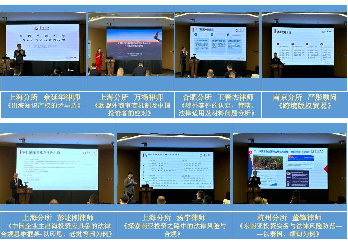 本次論壇邀請到了華商律師事務所上海、杭州、合肥、南京等地分所的多位資深律師及業界精英,共同構成主講嘉賓陣容。主講人們憑借各自在企業出海領域的深厚功底和豐富經驗,為與會者帶來了精彩紛呈的演講。他們從知識產權、外商審查機制、涉外案件的代理、版權貿易、南亞及東南亞的投資合規等不同角度深入剖析了企業出海面臨的挑戰與機遇,分享了多個成功案例,為參會者提供了寶貴的實戰經驗和策略建議。