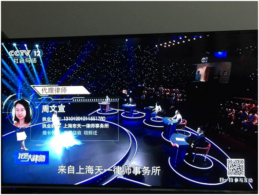 2016年7月6日,上海市天一律師事務所周文宣律師,應中央電視臺社會與法頻道《我是大律師》節目組邀請,作為本期律師嘉賓,參與節目錄制。