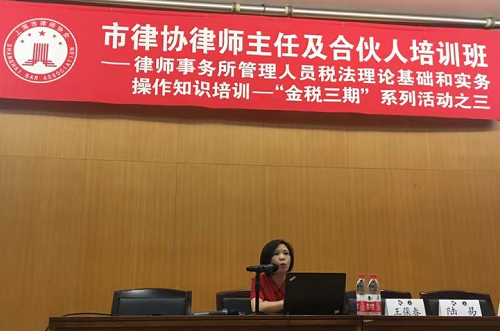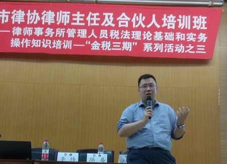 2018年9月7日,由市律協律師學院、稅法業務研究委員會主辦的“律師事務所管理人員稅法理論基礎和實務操作知識培訓——‘金稅三期’系列活動三”在交通大學(徐匯校區)凱原法學院二樓東方會堂舉行。