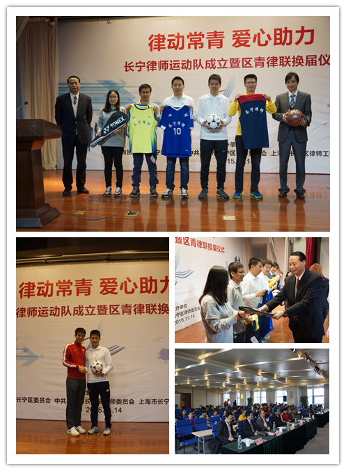 活動在區律工委主任、九州豐澤所主任陳剛律師的致詞中緩緩拉開序幕。首先進行的是長寧律師運動隊成立儀式,儀式由區律工委副主任、觀韜上海分所蔣信偉律師分別為長寧律師籃球隊、羽毛球隊、足球隊授予隊服和裝備。