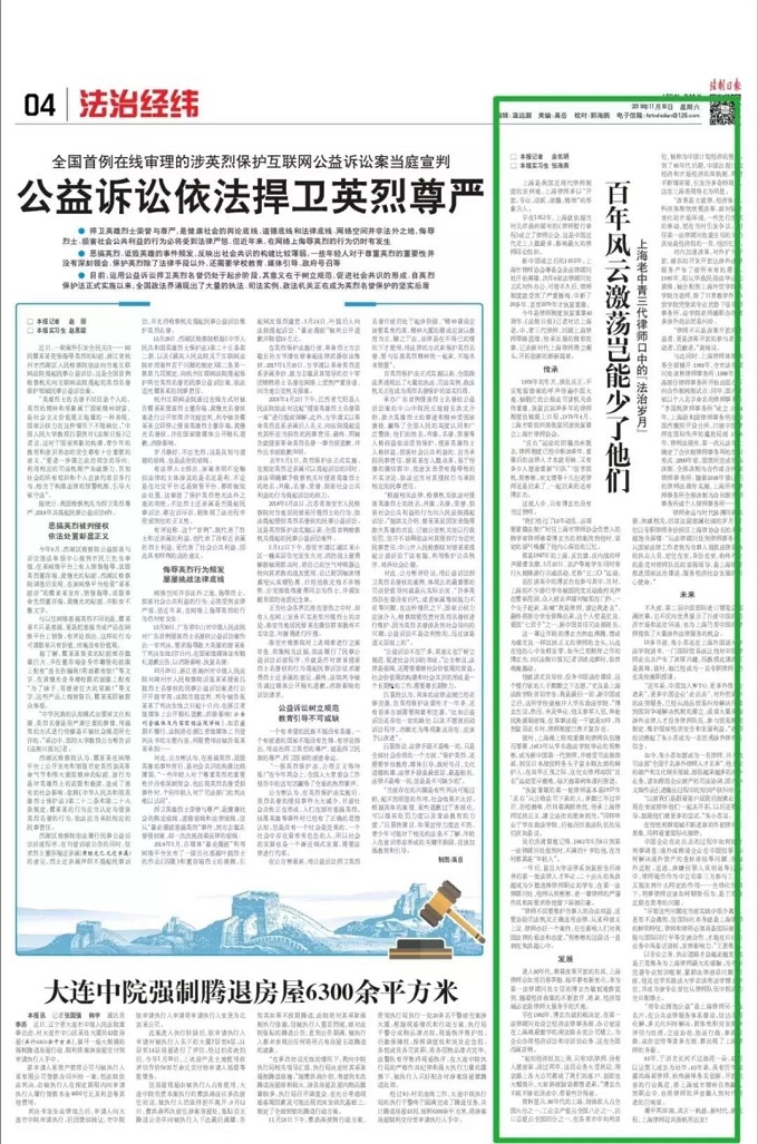 “用專業擁抱公益”是上海律師另一張名片。在公共法律服務體系建設、信訪矛盾化解、多元化糾紛解決、群體性和突發事件評估與處理、立法協商、依法行政、參政議政、法治宣傳等諸多方面,都出現了上海律師的身影。
