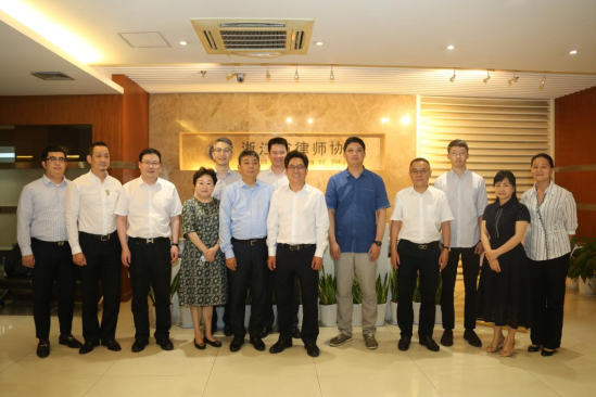 6月9日下午,上海律協會長季諾、上海市司法局律工處處長葉斌、上海律協秘書長陳東、長三角律師業一體化促進委員會主任朱小蘇等一行6人前往浙江律協調研座談。浙江律協會長鄭金都、專職副會長陳三聯、副會長史建兵和秘書長吳引引等出席座談。