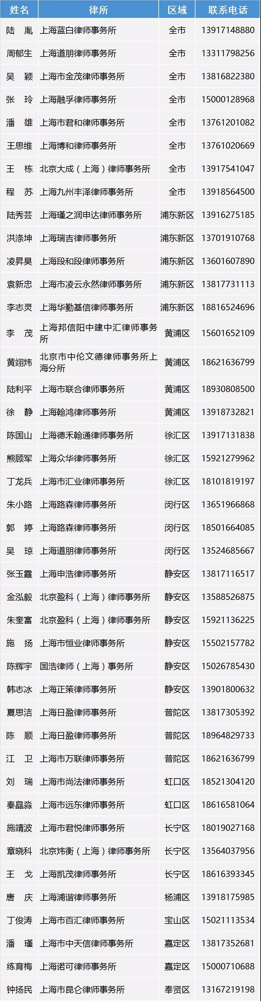 附:上海市律師協會各區青年律師志愿者名錄