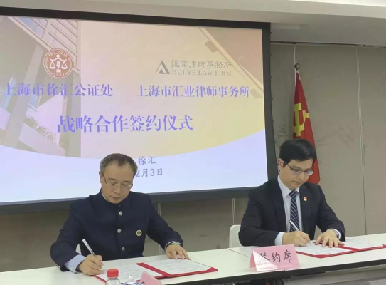 2019年12月3日,上海市匯業律師事務所與上海市徐匯公證處舉行了戰略合作簽約儀式。上海市匯業律師事務所管委會委員廖明濤律師,徐匯區司法局公服科科長仇倍珍,徐匯公證處主任潘浩以及徐匯公證處各部門負責人等出席儀式。