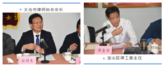 10月22日,太倉市司法局黨委書記、局長顧瀟軍、副局長孫建國、太倉市律師協會會長孫劍良一行,來寶山區參觀學習并座談交流。
