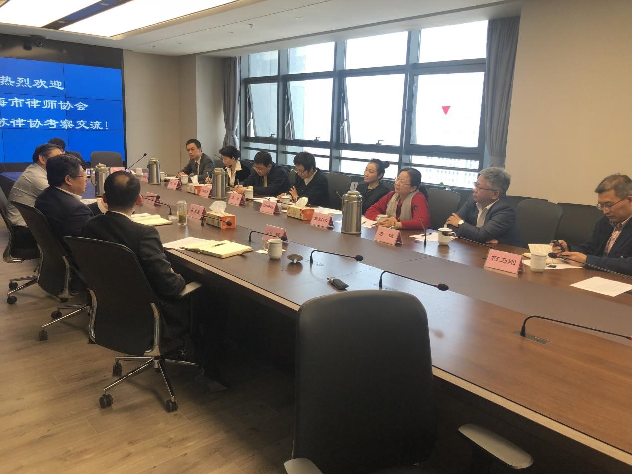 2018年4月25日上午,代表團(tuán)一行拜會(huì)江蘇省律師協(xié)會(huì)。江蘇律協(xié)會(huì)長薛濟(jì)民、副秘書長郭峰,馬健律師對于徐珊珊主任、童麗萍、裘索、方健副主任一行表示歡迎。會(huì)議圍繞“兩公律師”的話題展開,參會(huì)人員紛紛踴躍發(fā)言。薛濟(jì)民會(huì)長介紹了江蘇律協(xié)對于公職律師、公司律師加入律師協(xié)會(huì)的形式、加入后的權(quán)利義務(wù)以及加入后各項(xiàng)活動(dòng)的開展進(jìn)行了介紹。徐珊珊主任也對上海律協(xié)特邀會(huì)員工作委員會(huì)的發(fā)展及今后的管理模式進(jìn)行了介紹。委員龔達(dá)夫?qū)τ谏虾9韭蓭煹陌l(fā)展路徑做了介紹。委員趙瑜介紹了公司律師參與企業(yè)決策的經(jīng)驗(yàn)。