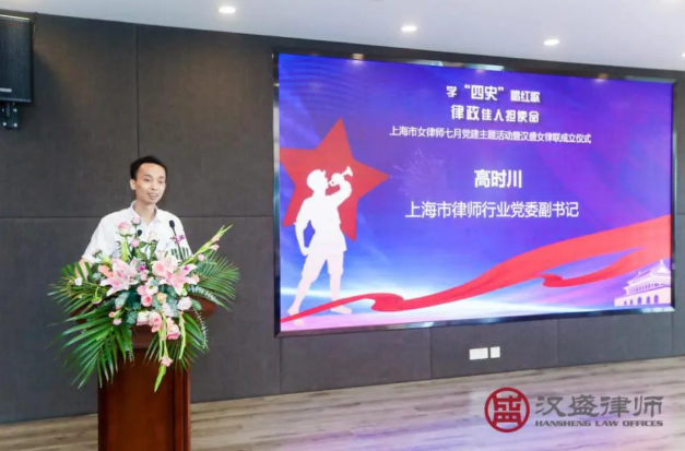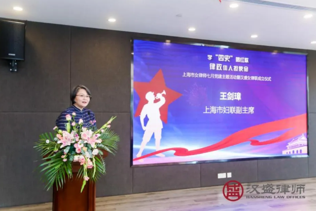上海市婦聯副主席王劍璋,上海市律師行業黨委副書記高時川,上海市律師行業黨委婦女工作部部長、上海市女律師聯誼會常務副會長韓璐等出席本次活動。上海市女律師聯誼會的理事代表、女律師黨建工作聯絡人代表、區女律師聯誼會負責人代表等來自市、區的60余名女律師匯聚一堂,歌詠“四史”,牢記使命,并一起見證漢盛律師事務所女律師聯誼會揭牌成立。