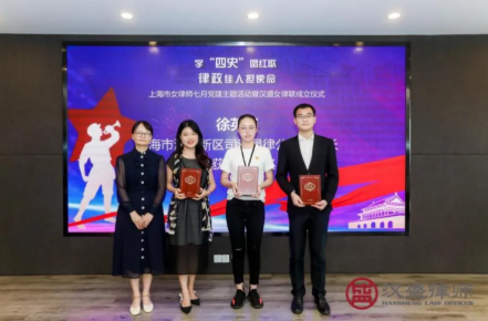 活動中還特別舉辦了漢盛女律聯成立儀式,漢盛律師事務所黨委書記金震華律師詳細介紹了事務所和黨建工作新發展。漢盛黨委副書記閆艷律師報告了漢盛女律聯的籌建工作情況。漢盛律師事務所黨建工作顧問、浦東新區人大工作研究會辦公室副主任金更良宣讀漢盛女律聯第一屆理事成員、班子成員名單。上海市浦東新區婦聯副主席王麗蓉、上海市浦東新區司法局律公處副處長張玥等一起為漢盛女律聯成立揭牌。