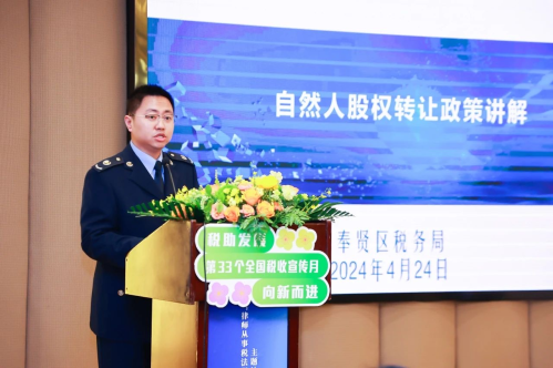 區(qū)稅務(wù)局個稅科副科長高潔圍繞《自然人股權(quán)轉(zhuǎn)讓政策講解》進行專題授課。