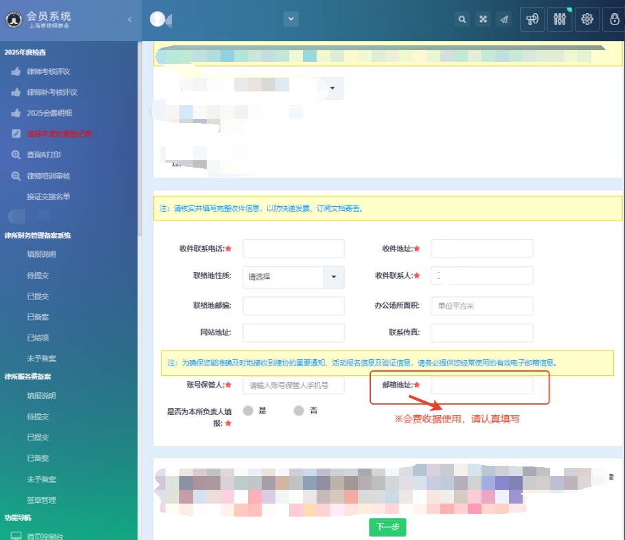 注意:電子郵箱在律所的年度考核填報(bào)頁面填寫。