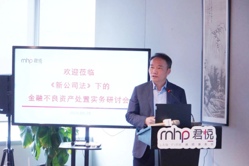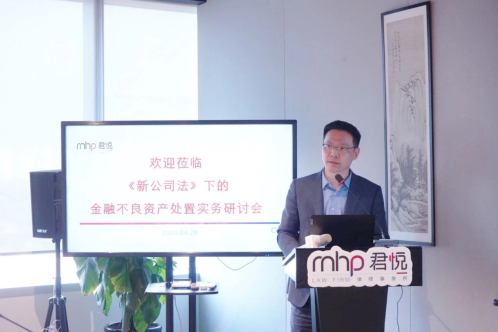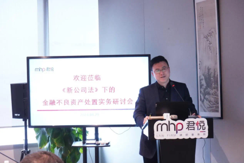 姚華在研討會上就“新公司法時代不良資產(chǎn)行業(yè)面臨的機會和挑戰(zhàn)”做主題分享,從不良資產(chǎn)處置的角度出發(fā),剖析新公司法時代關(guān)于股東出資、權(quán)利、公司治理、董監(jiān)高責任、公司人格否定制度和債權(quán)人保護等方面的修改對不良資產(chǎn)行業(yè)帶來的機會與挑戰(zhàn)以及不良資產(chǎn)司法處置法律服務(wù)的參與條件、細節(jié)把控、疑難問題、如何進階等問題進行了詳細闡述。