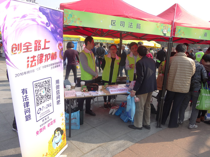 2016年3月5日,閔行區(qū)律工委協(xié)同區(qū)司法局相關(guān)工作人員參與2016年閔行區(qū)“三五”學(xué)雷鋒志愿服務(wù)嘉年華活動(dòng)。2015年是閔行區(qū)創(chuàng)建全國文明城區(qū)啟動(dòng)之年,這一年里,志愿者們堅(jiān)持“創(chuàng)建為民、創(chuàng)建惠民”的創(chuàng)城理念,在社會(huì)公益活動(dòng)中不斷傳遞愛心,傳播文明,成為全國文明城區(qū)創(chuàng)建路上的中流砥柱。2016年,閔行區(qū)以“創(chuàng)全路上,我心飛揚(yáng)”作為本次活動(dòng)的主題,充分體現(xiàn)我區(qū)積極向上,不斷進(jìn)步的姿態(tài)。