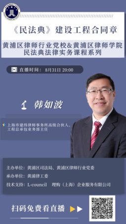 為進一步加強《民法典》在黃浦律師中的宣傳與研究,提升黃浦律師的業務能力,黃浦區司法局、黃浦律工委聯合LCOUNCIL 理購(上海)企業服務有限公司,依托黃浦區律師行業黨校、黃浦區律師學院于8月中旬至9月中旬開展了《民法典》法律實務課程系列線上培訓,同時本項目也是黃浦區律師行業黨校和黃浦區律師學院本年度重要的律師培訓課程之一,現已圓滿完成。