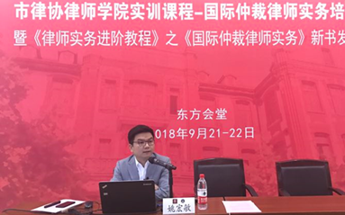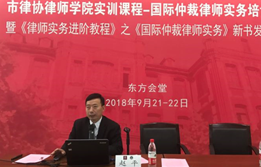 2018年9月21日,市律協(xié)律師學(xué)院聯(lián)合國際貿(mào)易業(yè)務(wù)研究委員會、海事海商業(yè)務(wù)研究委員會共同舉辦的國際商事仲裁律師實務(wù)培訓(xùn)班暨《律師實務(wù)進(jìn)階教程》之《國際商事仲裁律師實務(wù)》新書發(fā)布會在交通大學(xué)凱原法學(xué)院二樓東方會堂舉行。《國際商事仲裁律師實務(wù)》作為律師學(xué)院進(jìn)階教程系列第五本教材已于2018年6月出版。
