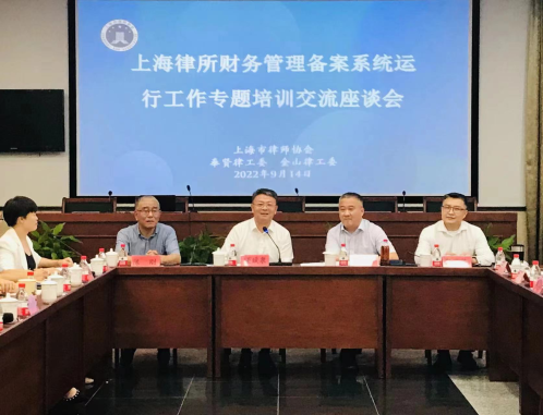 2022年9月14日下午,市律協(xié)副會長、上海市人大代表、民盟上海市委常委潘書鴻,市律協(xié)資產(chǎn)管理與財務(wù)委員會主任陳剛,市律協(xié)秘書長助理兼辦公室主任陶麗萍一行來奉召開上海律所財務(wù)管理備案系統(tǒng)運(yùn)行工作專題培訓(xùn)交流座談會。