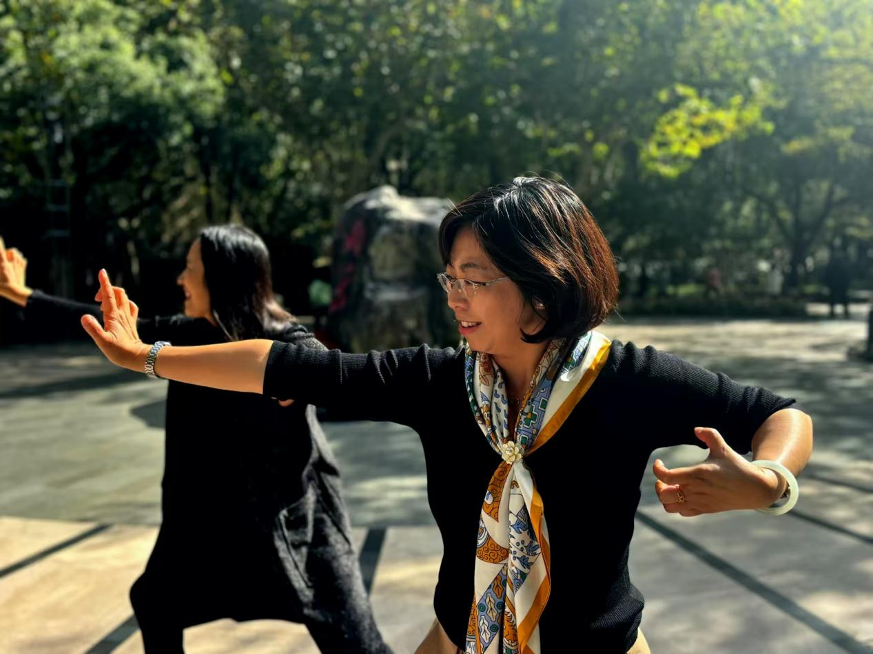 2024年11月8日上午“八段錦自我練習(xí)指導(dǎo)”線下活動(dòng)在徐家匯公園成功舉辦,特邀“匯律師太極社”教練,陳氏太極拳第十二代傳人魏金華老師到場指導(dǎo),魏教練帶領(lǐng)女律師們,練習(xí)動(dòng)作并詳細(xì)講解各動(dòng)作練習(xí)要領(lǐng)。從八段錦的起勢開啟了這一傳統(tǒng)健身之旅,雙手緩緩抬起,如托千斤,此為“雙手托天理三焦”,女律師們仰頭吸氣,隨著這一動(dòng)作女律師們仿佛將積聚的壓力與疲憊直送云霄,繼而輕輕吐氣,身心漸入空靈之境。“左右開弓似射雕”時(shí),她們目光炯炯,雙臂伸展拉弓,虛領(lǐng)頂勁,左右手用力對拉,盡顯英氣與力量,這一姿勢在開合之間,舒緩了女律師們長期伏案造成的肩背酸痛,重塑身體的平衡與和諧。女律師說“魏教練的指導(dǎo)讓我感受到了八段錦和太極運(yùn)動(dòng)對身體舒展及情緒放松的裨益,于吐納呼吸中舒緩壓力,于動(dòng)靜相濟(jì)中提升專注力”。