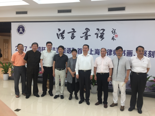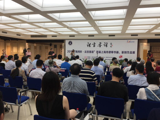 7月28日上午,“翰鴻杯·法言墨語”首屆上海律師書畫、篆刻展在白玉蘭劇場正式開展。上海市律師協會會長俞衛鋒、副會長周天平,上海市文聯副主席、市書法家協會主席周志高,原上海市書法家協會副主席、秘書長,現上海市書法家協會顧問張森,上海市書法家協會副主席、周慧珺書法研究院院長李靜,黃浦區司法局黨委書記、區書法家協會主席張偉舫,黃浦區司法局局長劉輝等出席開幕活動,來自全市書畫、律師和司法界的100余名嘉賓應邀參加。