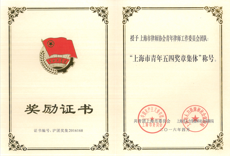 近日,由團(tuán)市委、市人力資源和社會(huì)保障局開(kāi)展的2015年度 “上海市青年五四獎(jiǎng)?wù)隆痹u(píng)選活動(dòng)落下帷幕,市律協(xié)青年律師工作委員會(huì)團(tuán)隊(duì)榮獲“上海市青年五四獎(jiǎng)?wù)录w”稱號(hào)。