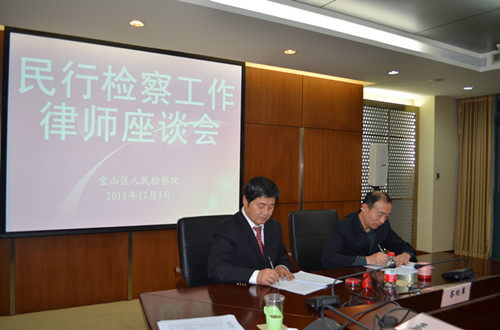 2012年11月1日,我區律師工作委員會主任范仲興,副主任鄒甫文、譚春明,委員欒國慶、孟山、常海防應區人民檢察院民行科邀請,參加了2012年民事行政檢察工作律師座談會。市院民行處副處長邱燕,市院民行處民事科科長高建華,民行科科長趙建國出席了會議。