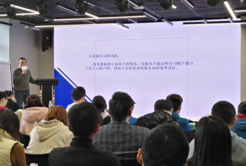 團區委副書記、楊浦區中小企業服務中心主任陳敏興為活動致辭,他勉勵創業者要勇于創新,善于突破,政府作為服務企業的“店小二”會主動作為服務企業發展,為楊浦的雙創企業搭建發展的舞臺。市場監管領域的專家開展企業信用培訓后,三位資深律師為園區企業送來了“法治關懷”。